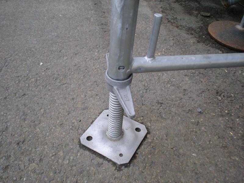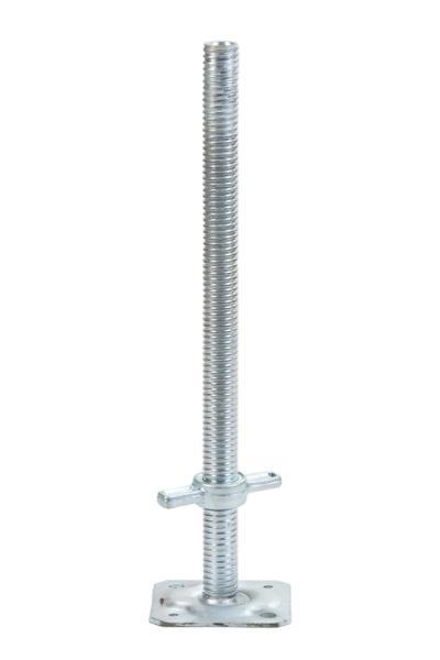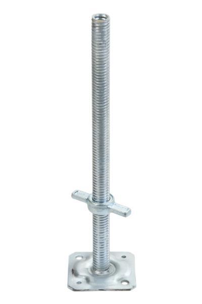 Oceľová, pozinkovaná, s maticou opatrenou rukoväťou, rýchlo idúci závit, základová doska nánožky 150 mm x 150 mm. Blokovanie proti vyskrutkovaniu matice. Možno použiť ako hlavovú vretenovú pätku.